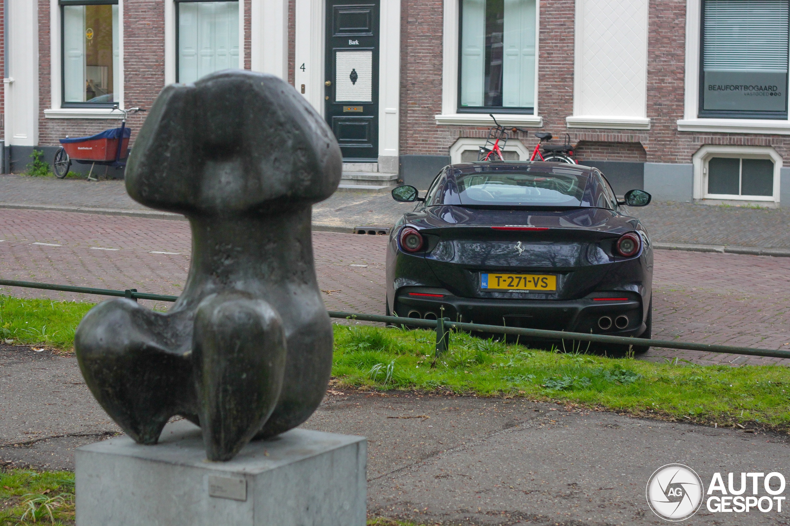 Leuke Ferrari om zo tegen te komen in Utrecht. Kleur kwam helaas door schemering en bomen wat minder mooi naar voren.